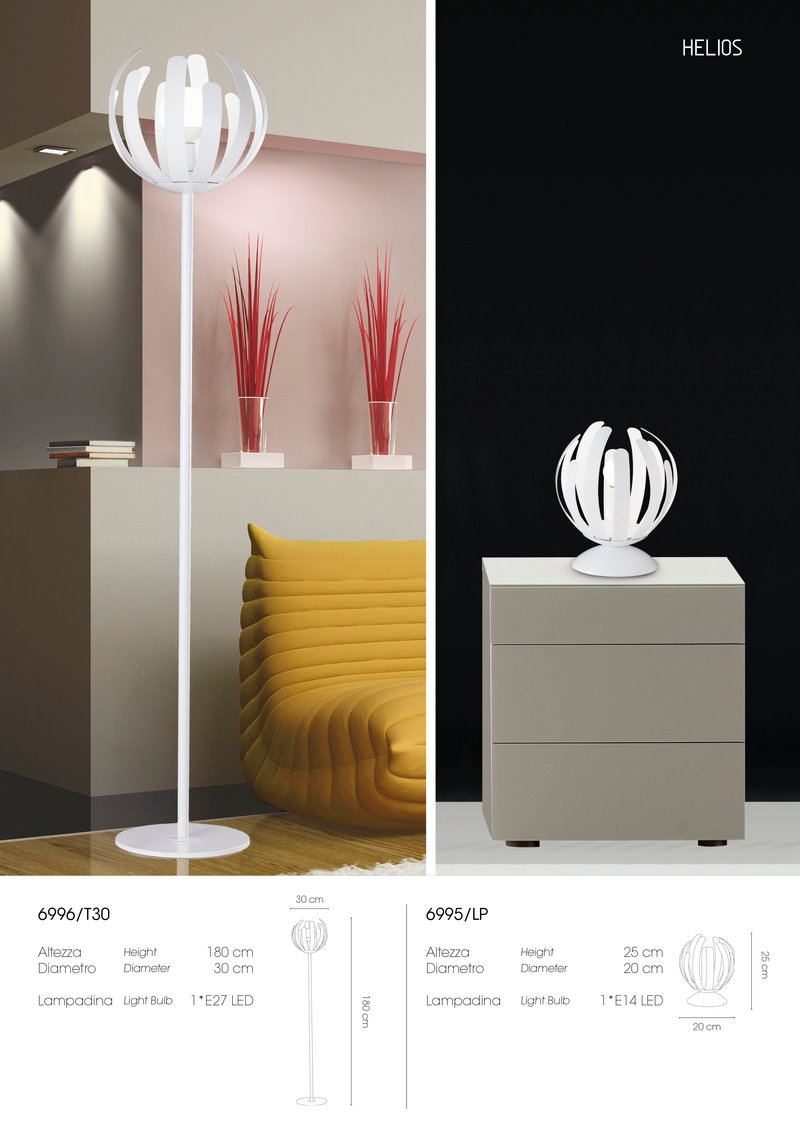 Collezione in metallo laccato nei colori: Bianco Opaco o Bruno Opaco.