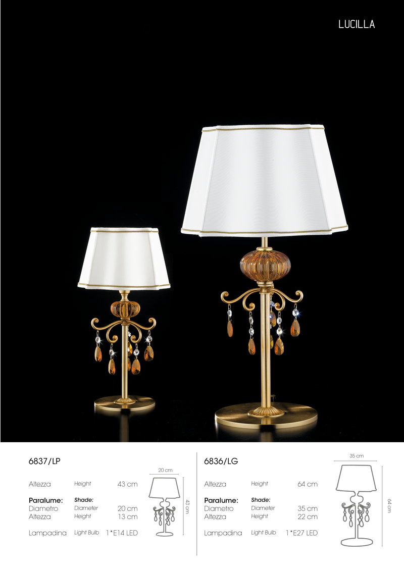 color Topazio con paralumi in seta di Avorio Chiaro.