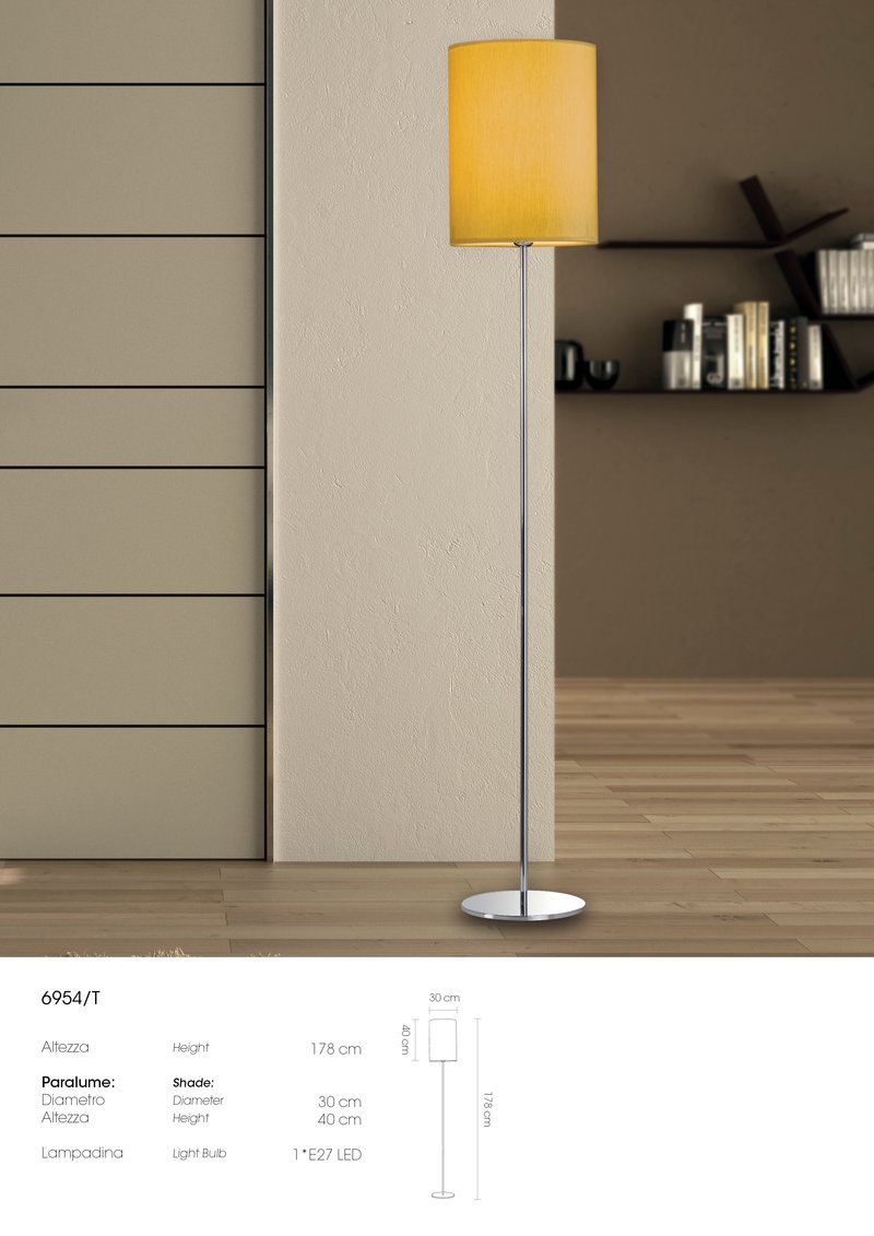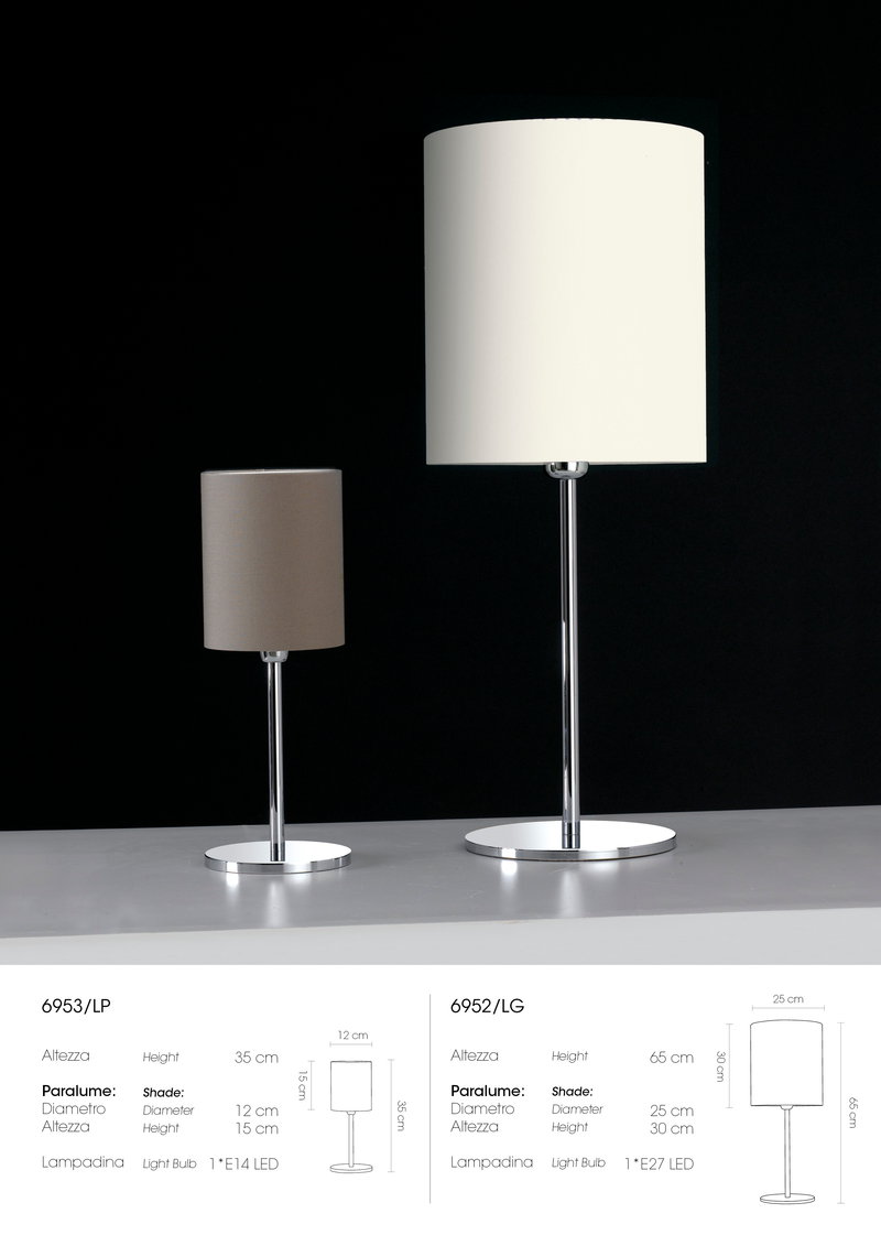 Collezione con paralumi cilindrici in tessuto nei colori: