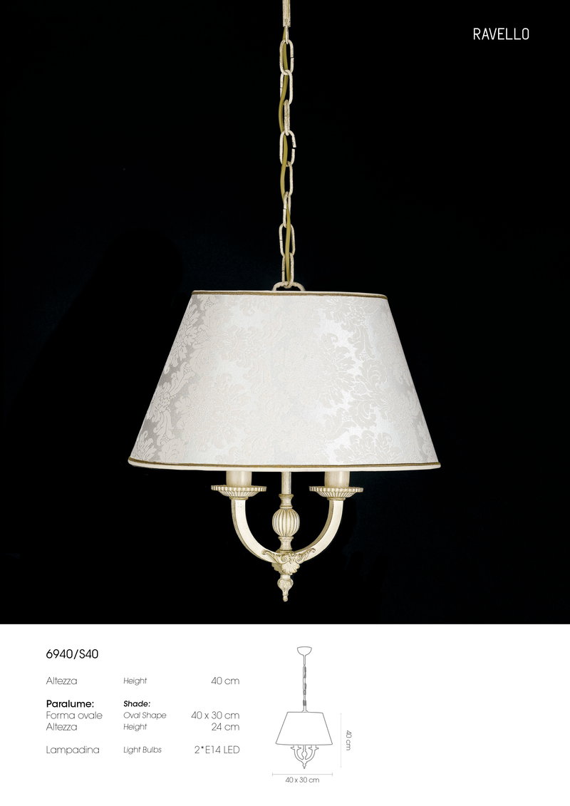 Collezione in ottone con fregi decorativi in fusione di ottone e paralumi in damascato Panna.