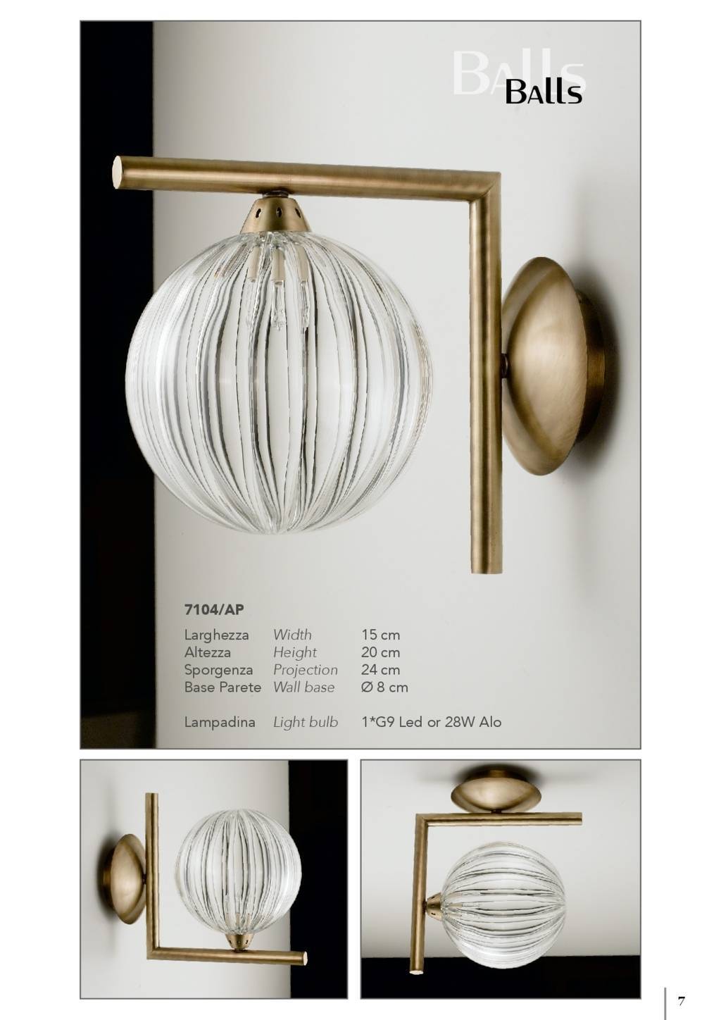 Collezione con tubi in ottone e sfere dm.150 trasparenti: lisce o rigate
