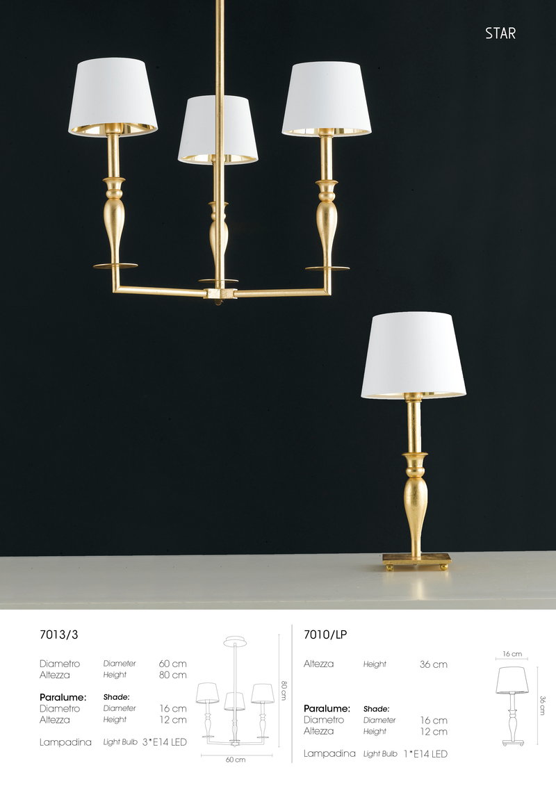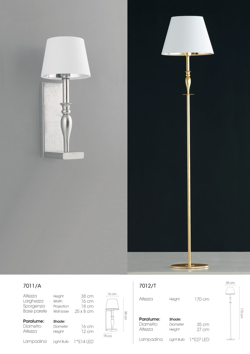 Paralume in tessuto: Bianco con interno laminato Cromo o Oro.